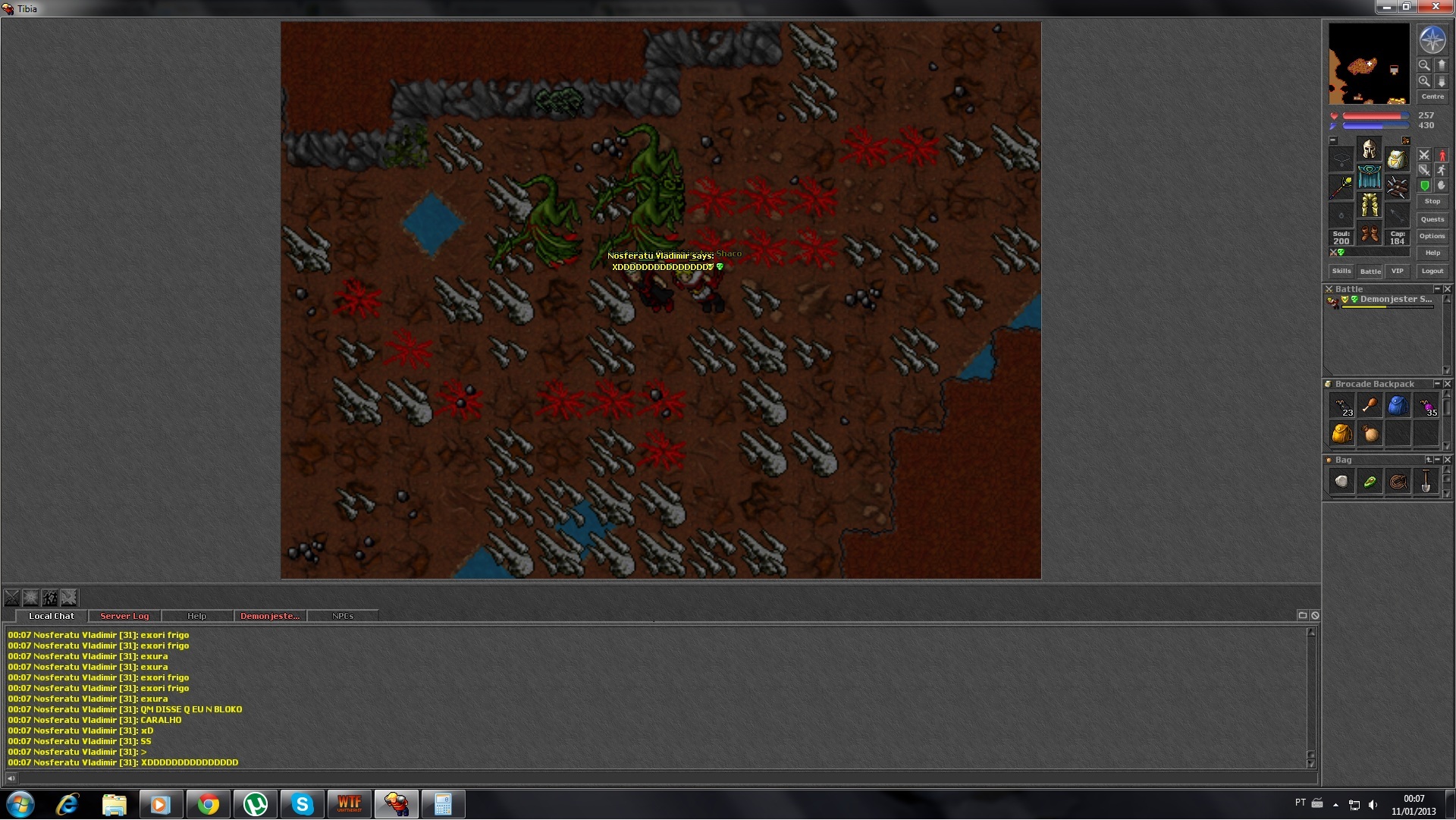 Shaco dando uma força nas cavernas de Edron. Esses dragões até que não foram difíceis, apenas um Hero que tentou nos aniquilar, mas escapamos.