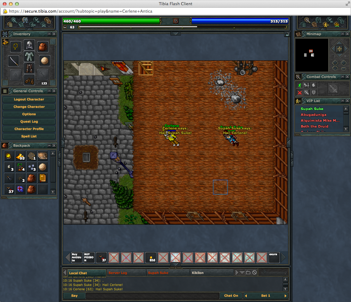 Just a photo with my bff Supah Suker. Rookgaard Pacera. Supah Suke is level 34.